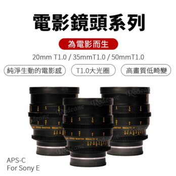 | 商品標準配備包含 | 中一光學 電影鏡頭系列 T1.0 APS-C 三鏡套裝含收納箱*1 |